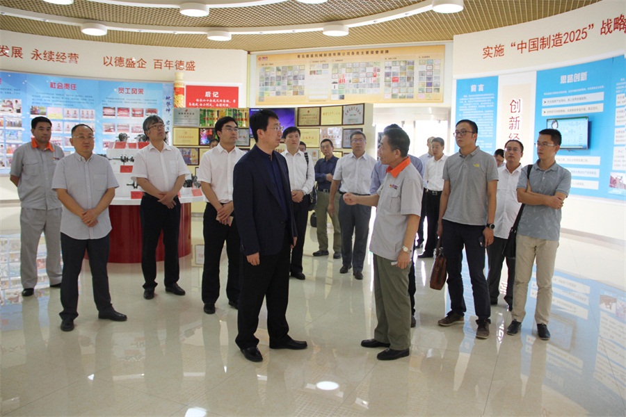 9月28日,省民營(yíng)企業(yè)高質(zhì)量發(fā)展服務(wù)2隊(duì)隊(duì)長(zhǎng)鄭立波一行10人,由青島市工商聯(lián)劉傳華秘書(shū)長(zhǎng)陪同來(lái)公司開(kāi)展調(diào)研和對(duì)接,我公司董事長(zhǎng)孫佩璋、黨委書(shū)記潘勝利、總經(jīng)理張海德、管理總監(jiān)李建平陪同。服務(wù)隊(duì)的各位領(lǐng)導(dǎo)參觀了科技文化館、信息化系統(tǒng)管理平臺(tái)、各生產(chǎn)車間。最后,在公司培訓(xùn)中心現(xiàn)場(chǎng)聽(tīng)取我公司發(fā)展情況匯報(bào),對(duì)我公司在新舊動(dòng)能轉(zhuǎn)換、高質(zhì)量發(fā)展等方面取得的成績(jī)給予高度評(píng)價(jià),雙方就今后企業(yè)高質(zhì)量發(fā)展服務(wù)相關(guān)工作進(jìn)行了初步探討交流。