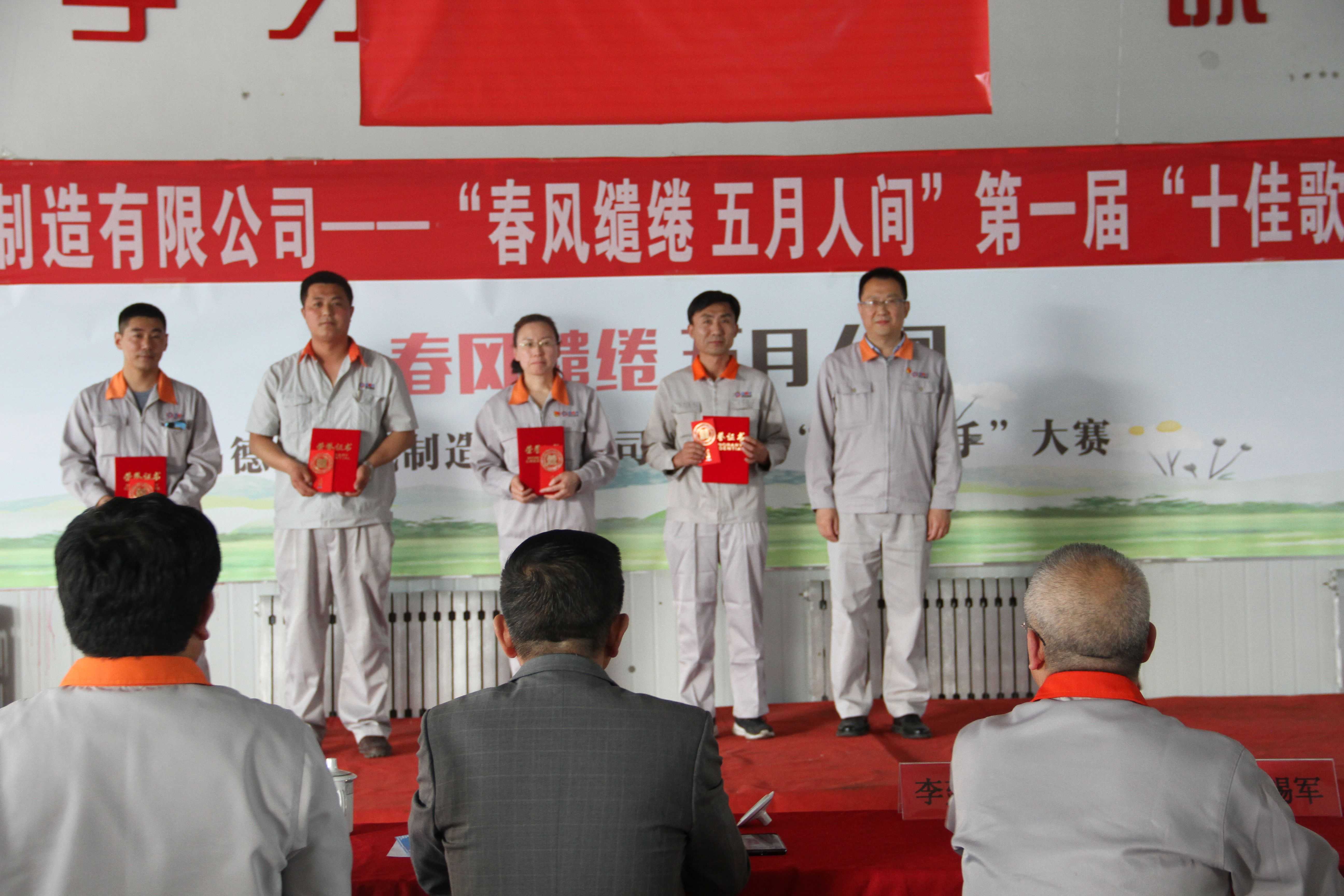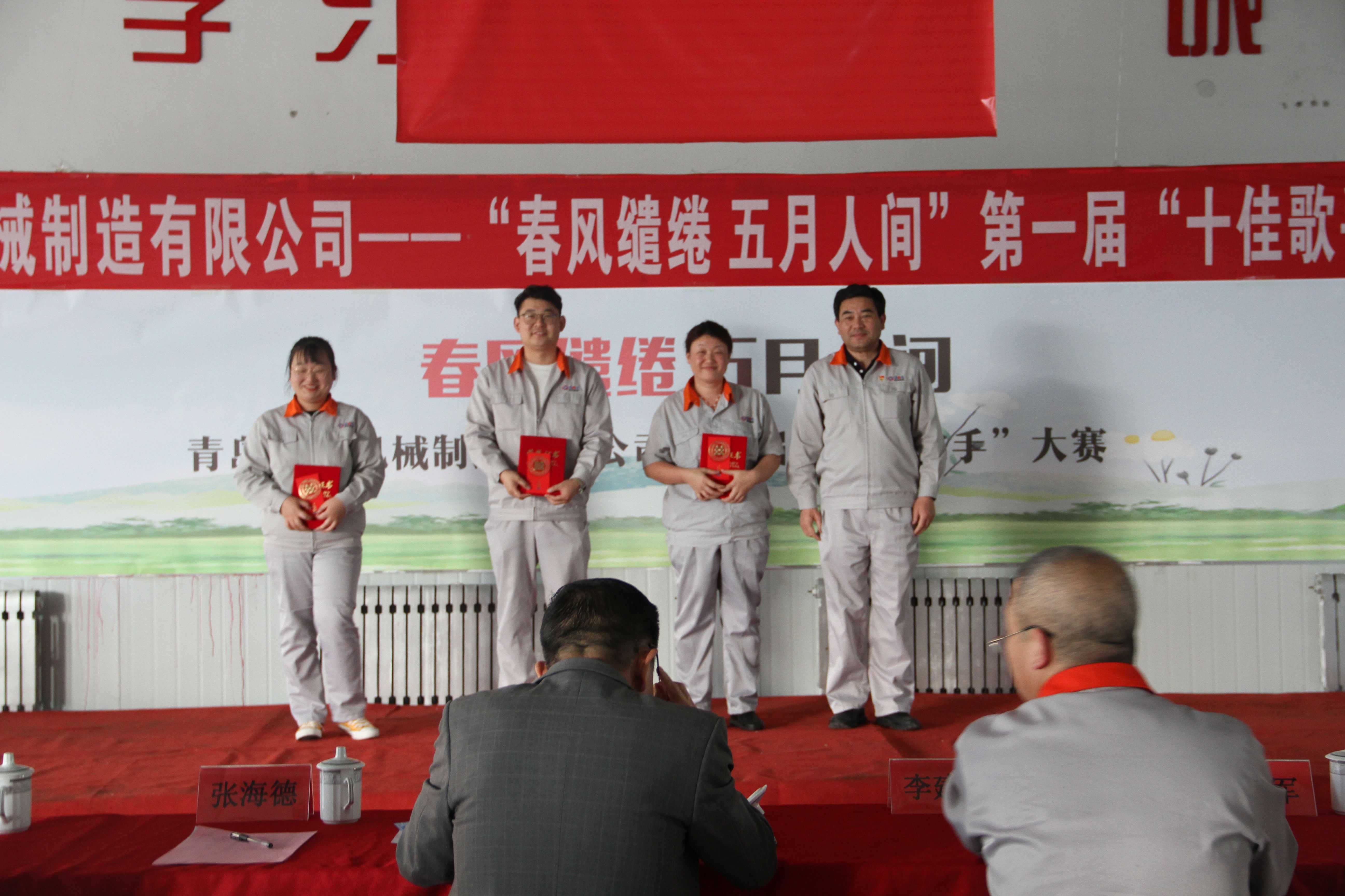 5月16日,決賽現(xiàn)場強(qiáng)強(qiáng)對決,一首首風(fēng)格迥異的歌曲將比賽現(xiàn)場的氣氛帶動(dòng)得淋漓盡致。臺(tái)上歌聲婉轉(zhuǎn)流連,臺(tái)下沉醉其中,掌聲不斷。最后,評委們根據(jù)選手們的選曲難度和現(xiàn)場表現(xiàn),公平公正且認(rèn)真謹(jǐn)慎打出了決賽分?jǐn)?shù),經(jīng)過工作人員核算后,梁艷艷獲得一等獎(jiǎng),由董事長孫佩璋為她頒發(fā)榮譽(yù)證書和現(xiàn)金紅包;郝選政、劉新龍、付云會(huì)獲得二等獎(jiǎng),由總經(jīng)理張海德為他們頒發(fā)榮譽(yù)證書和現(xiàn)金紅包;李曉義、劉欣、劉寶龍、趙書林獲得三等獎(jiǎng),由黨委書記羅賽為他們頒發(fā)榮譽(yù)證書和現(xiàn)金紅包;孫瑞英、萬樹鑫、蒲天倉獲得三等獎(jiǎng),由黨委副書記李建平為他們頒發(fā)榮譽(yù)證書和現(xiàn)金紅包。